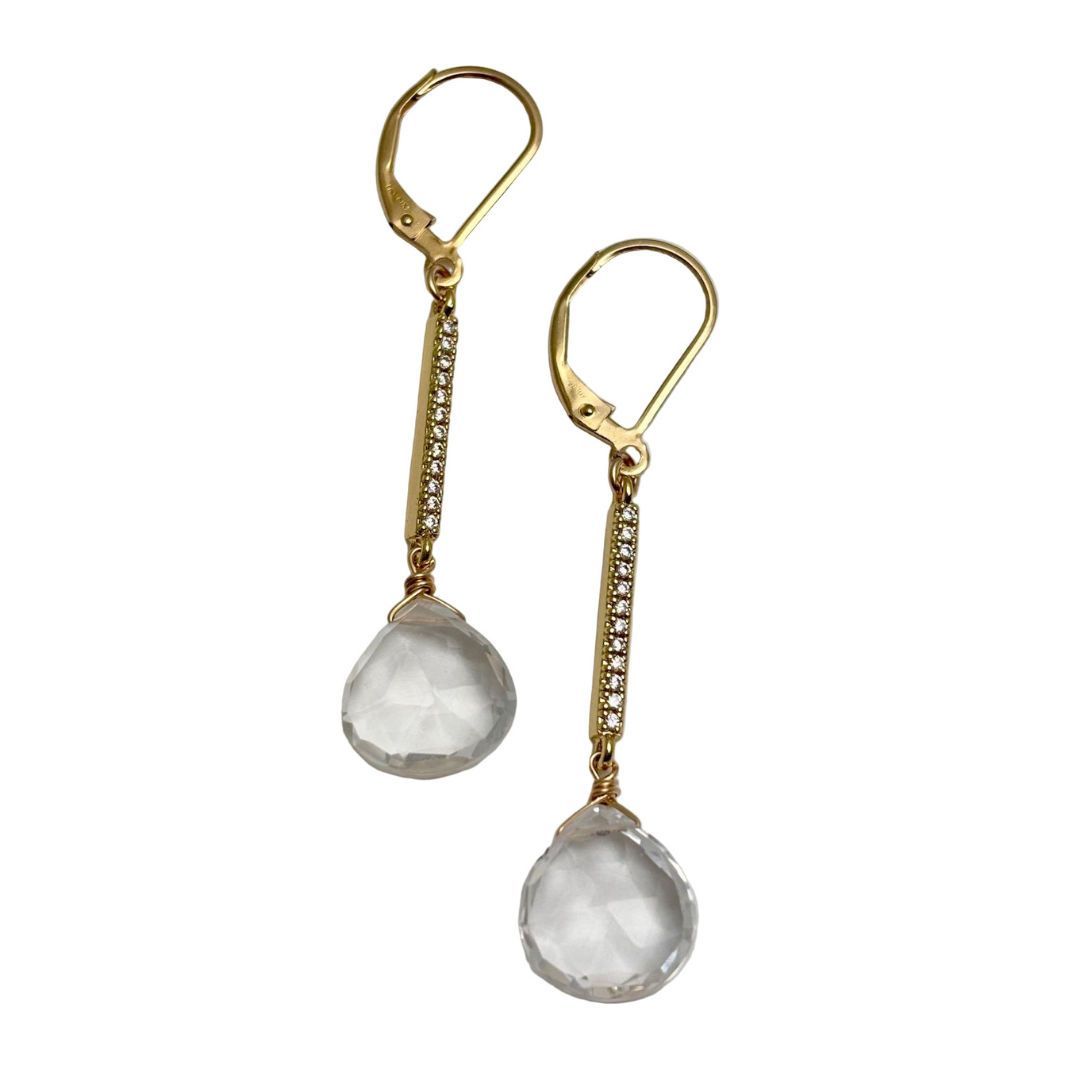 Hand cut white topaz shine and the pave bars sparkle. A stellar holiday choice for the holidays. Choose 14k gold filled or sterling.