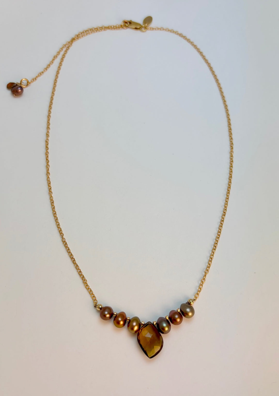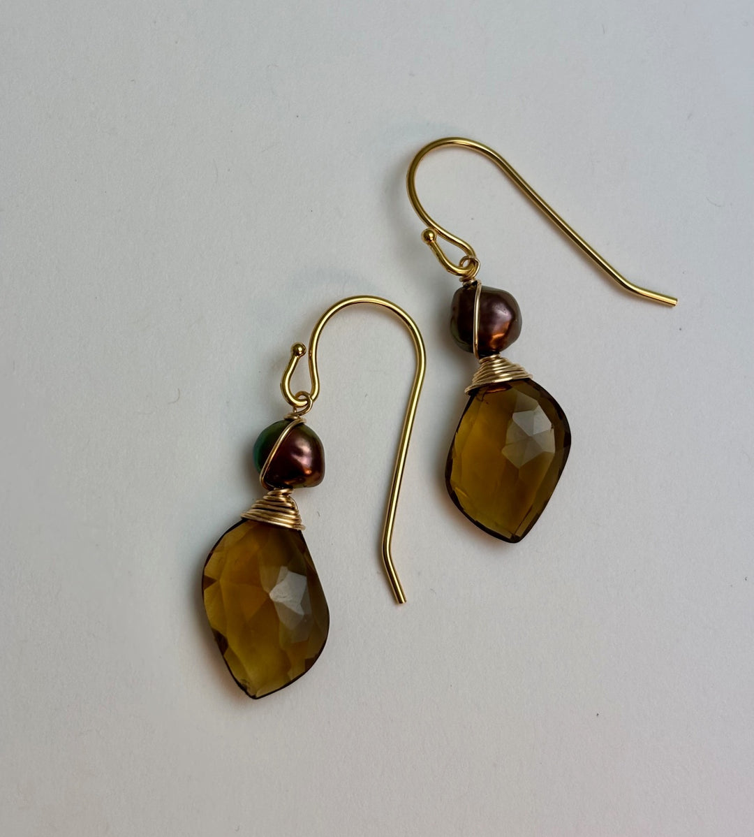 The gemstones are naturally occurring and hand-cut. The pearls are cultured freshwater. Inclusions in the stones and pearls add to the beauty and uniqueness of each piece.